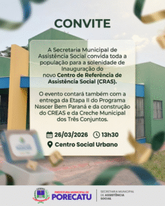 Secretaria Municipal de Serviço Social Inauguração do novo Centro de Referência de Assistência Social (CRAS) Leia mais » 23/03/2026