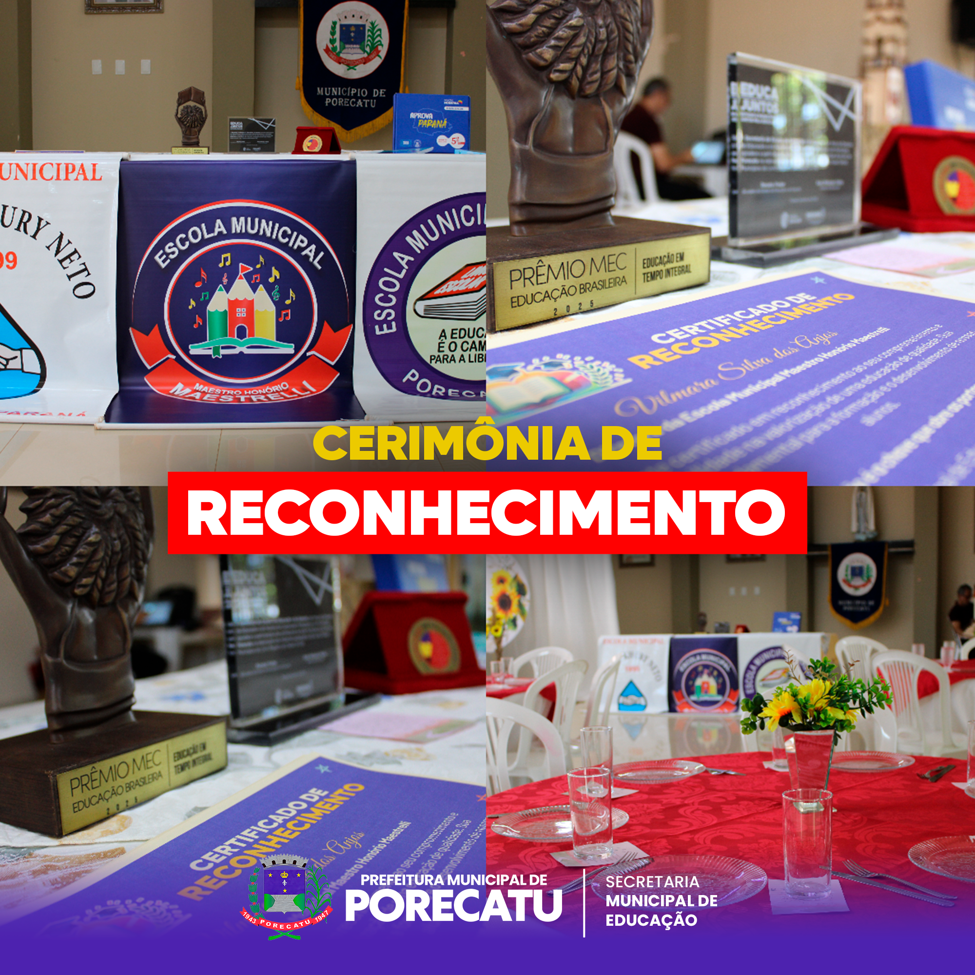 A Secretaria Municipal de Educação realizou uma cerimônia de reconhecimento e valorização do trabalho dos professores regentes de 2°e 5°s anos e diretoras dos Anos Iniciais do Ensino Fundamental da Rede Municipal de Educação de Porecatu.
