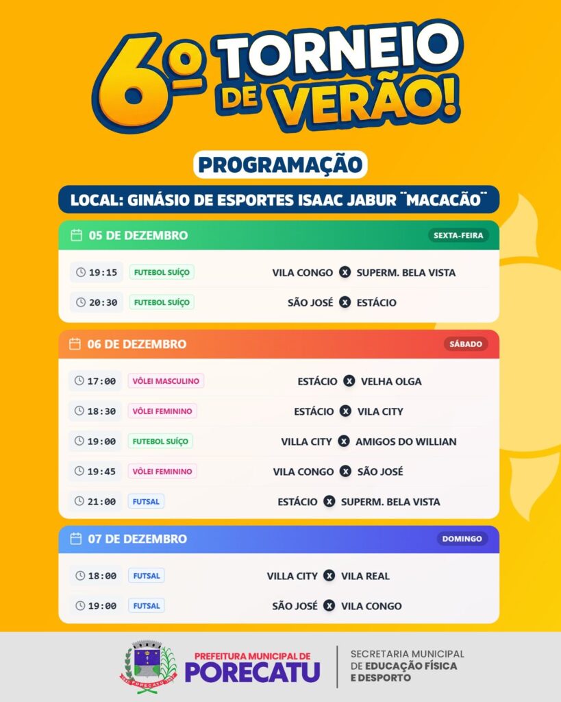 Início » Secretaria Municipal de Educação Física e Desporto » 6º Torneio de Verão – Porecatu